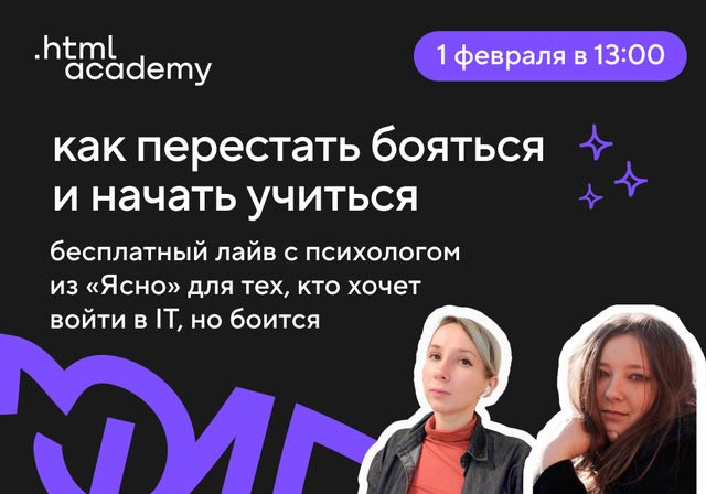 Запишитесь на лайв, чтобы не пропустить событие. Всем участникам подарим скидку на курсы HTML Academy и пришлём полезные материалы по теме.