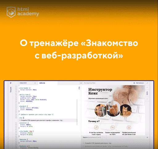Для всех, кто задумывается о старте в профессии программиста, но пока не уверен в своих силах, у нас есть бесплатный тренажёр «Знакомство с веб-разработкой». Тренажёр состоит из трёх частей, посвящённых основам HTML и CSS, JavaScript и PHP.