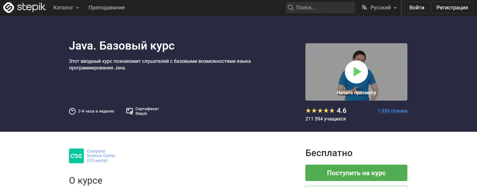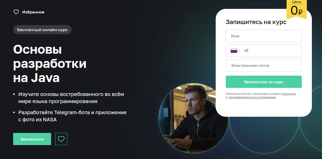 • Чему научитесь: мини-курс по азам Java: синтаксис, компиляция, запуск, основы ООП. Слушатели после выполнения практических заданий получат сертификат.