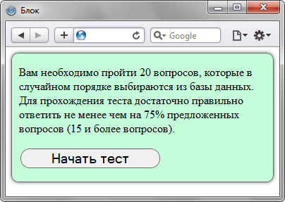 Давайте разберём этот приём на небольшом примере, в котором выводится текст в блоке и кнопка. У блока и кнопки заданы скруглённые уголки, к блоку также добавляется небольшая тень. Пока браузеры для CSS3 применяют преимущественно специфические свойства со своими префиксами: