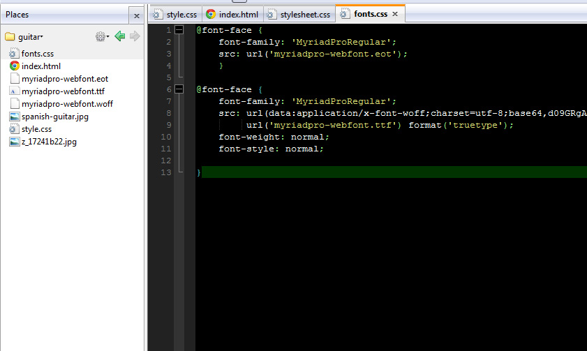 Ну а теперь встроим всё это дело к нам в CSS (см. в файле stylesheet.css), и скопируем к нам в папку файлы шрифтов — на всякий случай:
