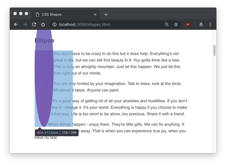Текущая реализация CSS Shapes — это CSS Shapes Module Level 1, она в основном вращается вокруг свойства shape-outside. Это свойство определяет фигуры, вокруг которых может обтекать текст.