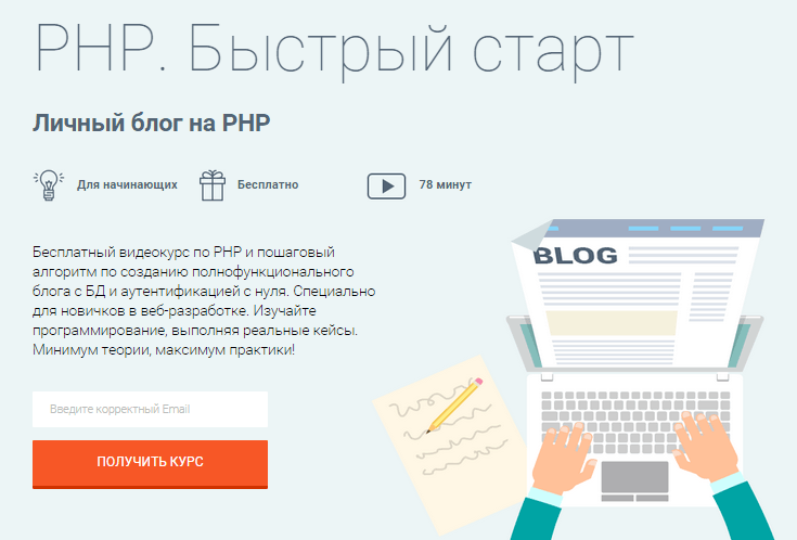 Бесплатный видеокурс по PHP и пошаговый алгоритм по созданию полнофункционального блога с БД и аутентификацией с нуля. Специально для новичков в веб-разработке. Изучайте программирование, выполняя реальные кейсы! Минимум теории, максимум практики.
