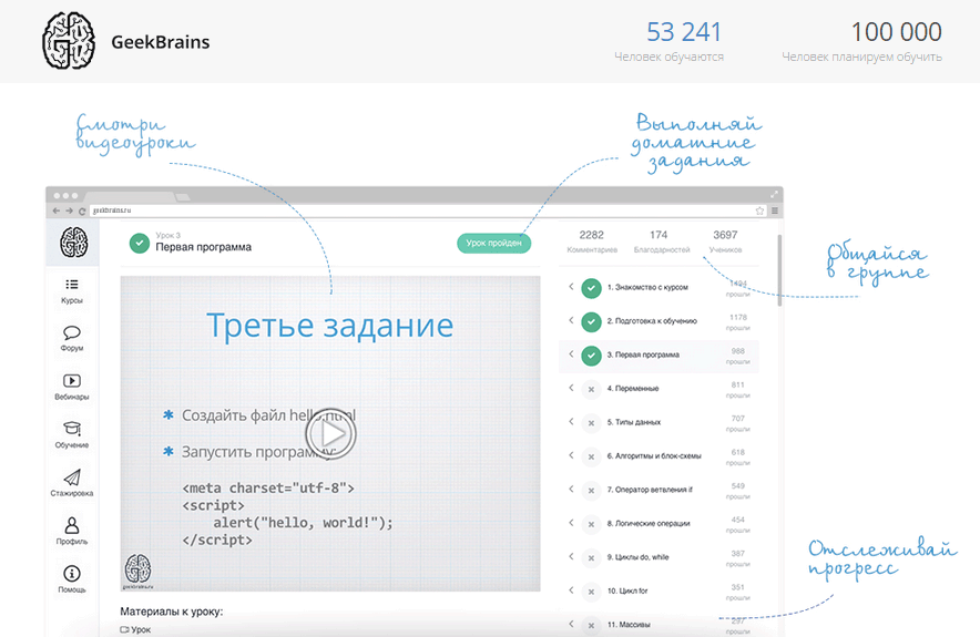 Образовательный IT-проект GeekBrains при поддержке Билайн запустил уникальный проект, задача которого — бесплатно обучить азам программирования 100 тысяч человек.