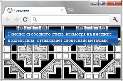 Результат данного примера показан на рис. 4. Обратите внимание, что один из цветов градиента задан прозрачным, поэтому он меняется косвенно через цвет фона веб-страницы.