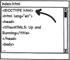 «Обновление» до HTML5 можно сделать простым изменением доктайпа. Элемент <!DOCTYPE> должен всегда располагаться в первой строке кода любой веб-страницы. Предыдущая версия HTML определяла несколько вариантов доктайпа и выбор правильного был делом нелегким. В HTML5 есть только один доктайп: